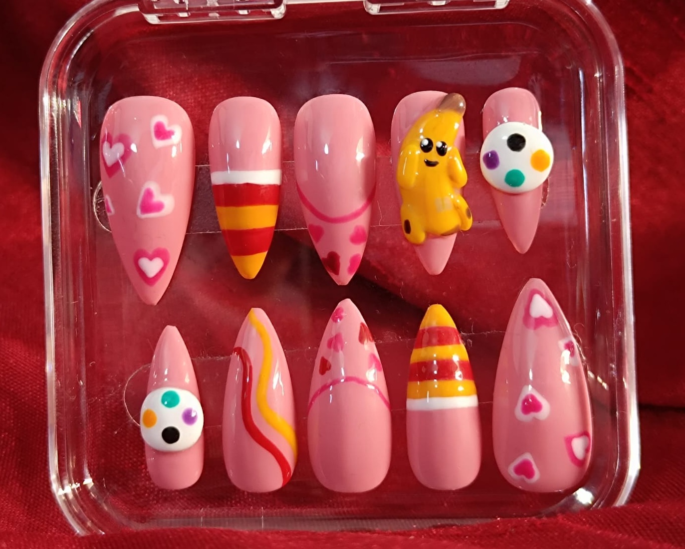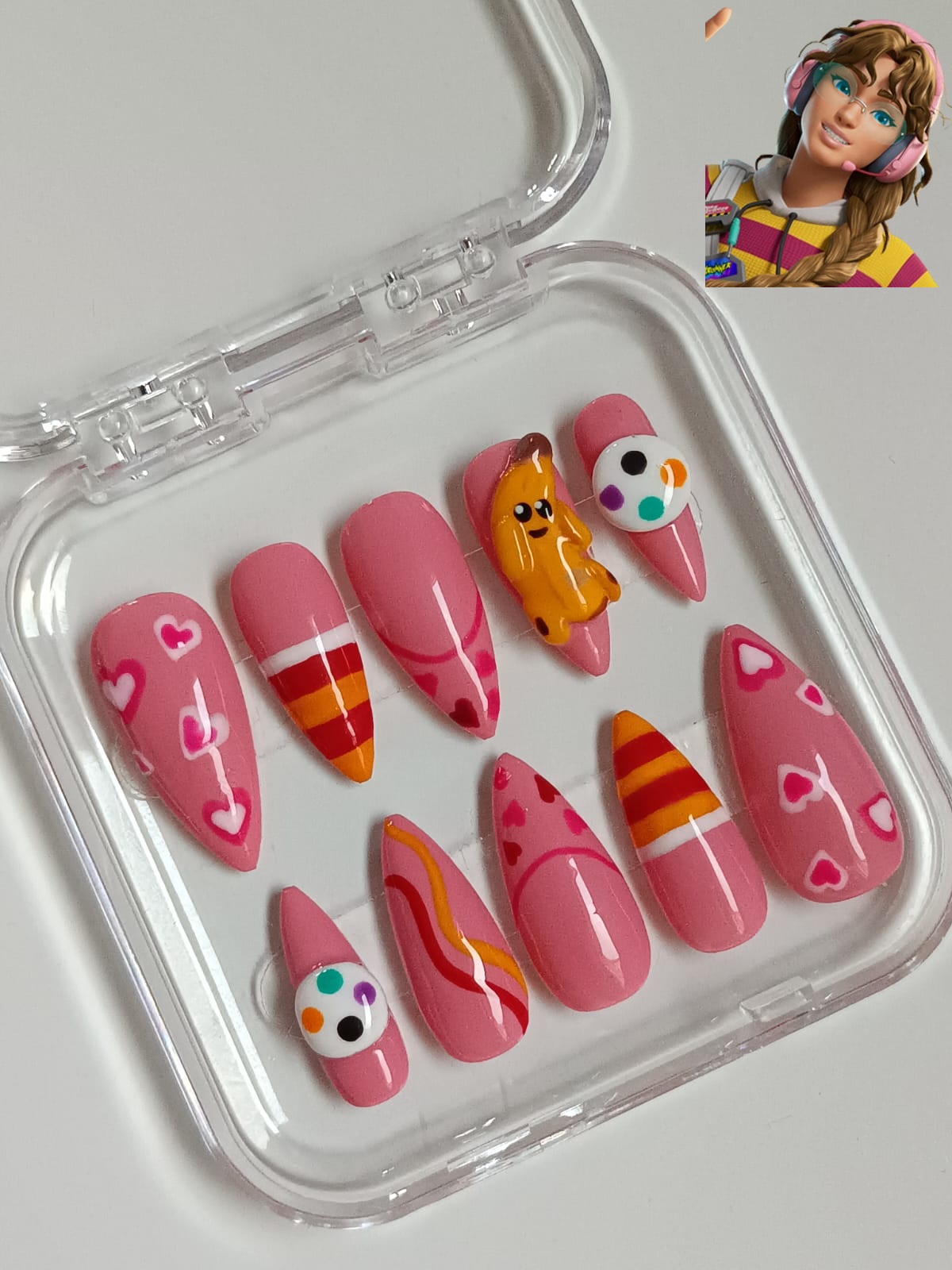Set de press-on inspiré du personnage de Pixelle dans le jeu vidéo Fortnite, fait main, aux détails pixélisés et brillants.🎮🕹️
